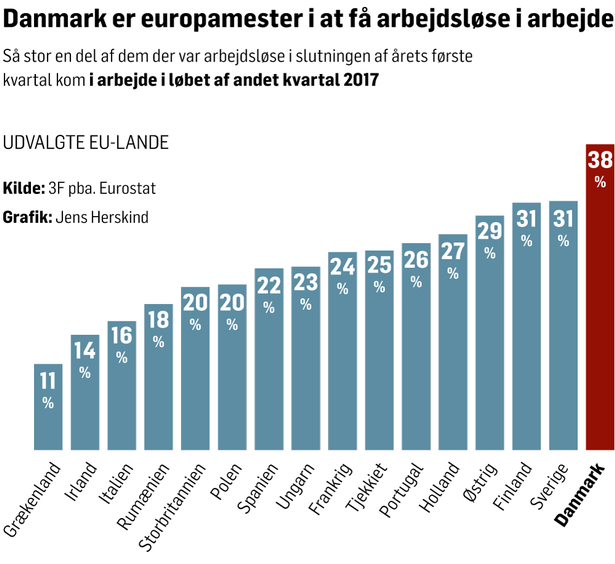 la Danimarca è campione europeo nel procurare lavoro ai disoccupati.